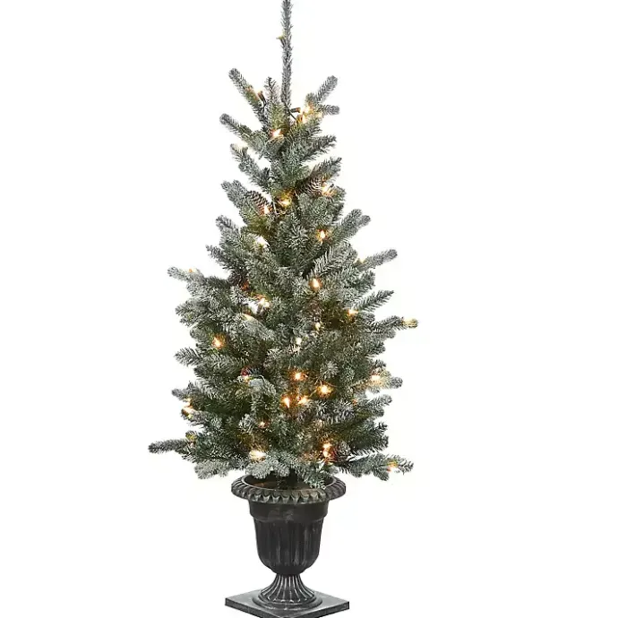 Deck the halls (or front porch) with this 4 ft. Feel Real Pre-Lit Snowy Morgan Spruce Tree! Detailed with snow glitter branches, this realistic holiday arrangement will bring a touch of winter enchantment into your home.
