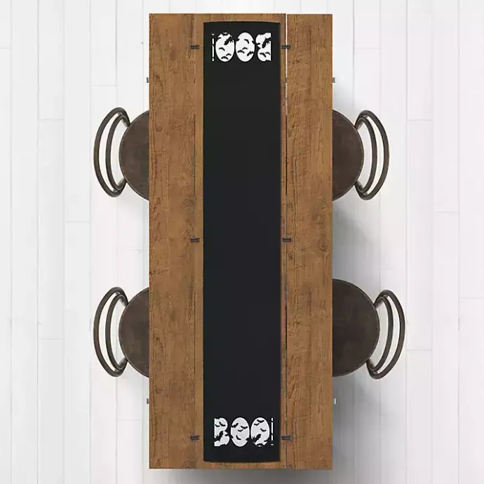Host a haunted dinner party with this Black Boo Bats Table Runner. Midnight black with cute bat accents, it lays the perfect foundation for a spooky table setting!