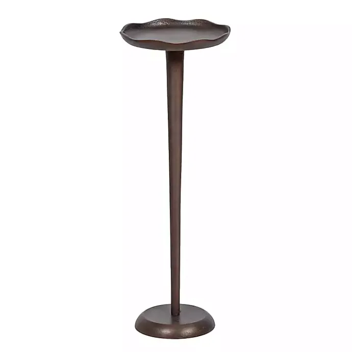 Decorate your home with the eye-catching beauty of this Bronze Metal Alicia Accent Table! Handcrafted in India, this round drink table is made with sandcast aluminum, giving it a distinct deckled edge and a rugged texture.