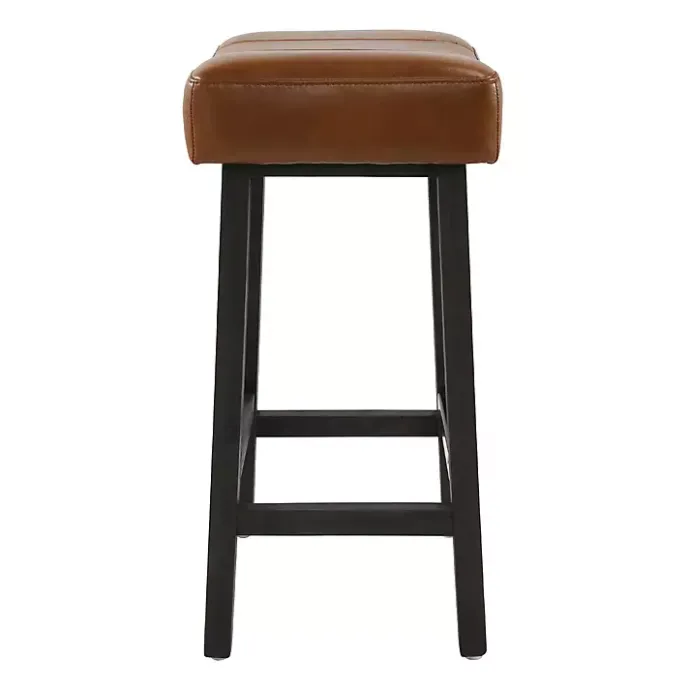 Refresh your kitchen with our Caramel Wood and Leather Backless Stool! With its contoured seat and wooden legs, this stool is the perfect fit for your home.