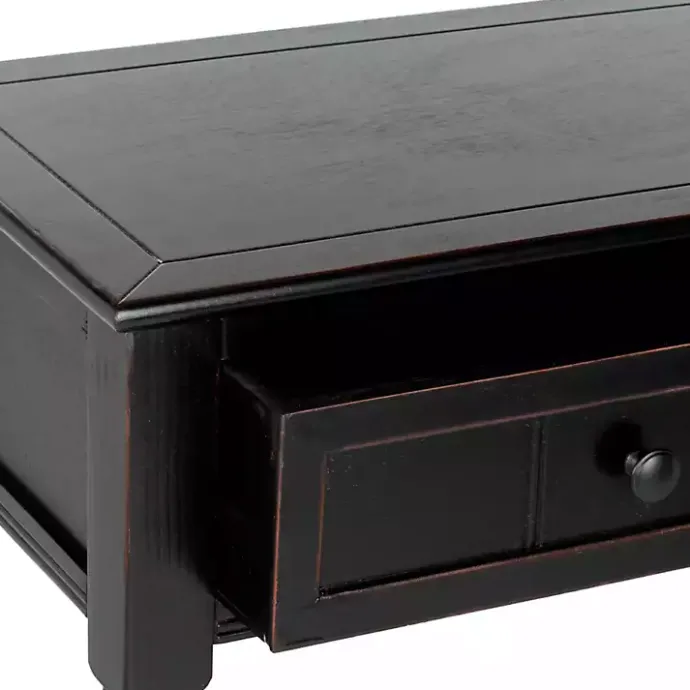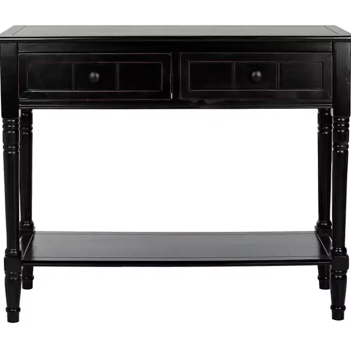 Create a charming entryway display with this Distressed Black Wood 2-Drawer Console Table. Featuring classic turned legs, it’s sure to incorporate a timeless element into your space.