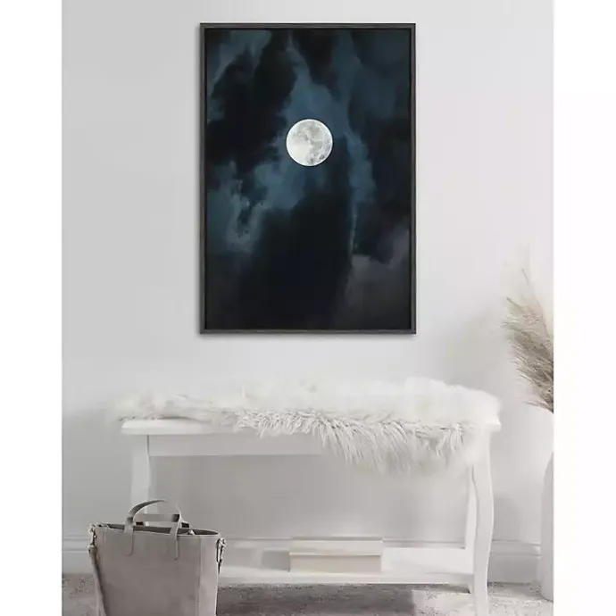 This Driftless Moon Framed Canvas Art Print captures the peaceful feeling of the full moon. Swirls of midnight blue will bring the mystery of the night sky into your space!