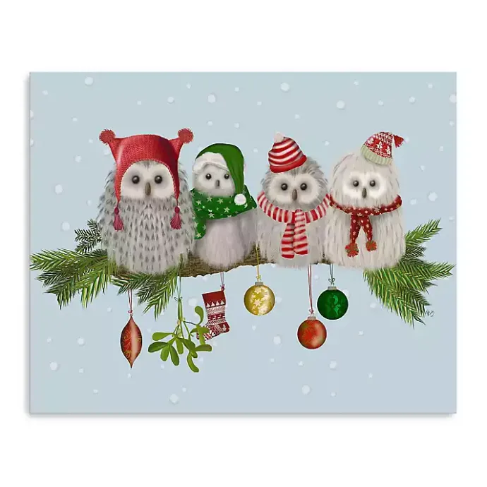 Invite an adorable Christmas spirit into your home with this Fluffy Owls on Branch Canvas Art Print. The group of feathered friends will keep your walls warm and cozy!