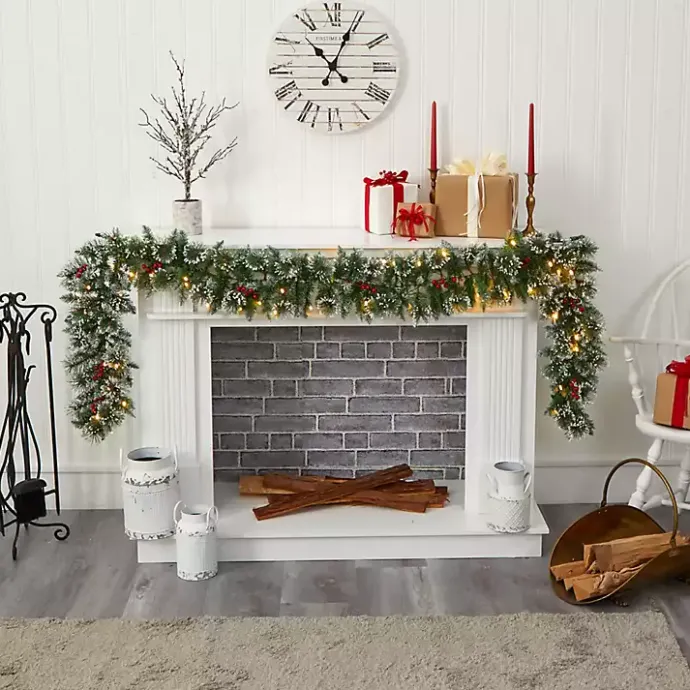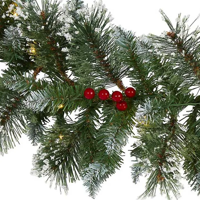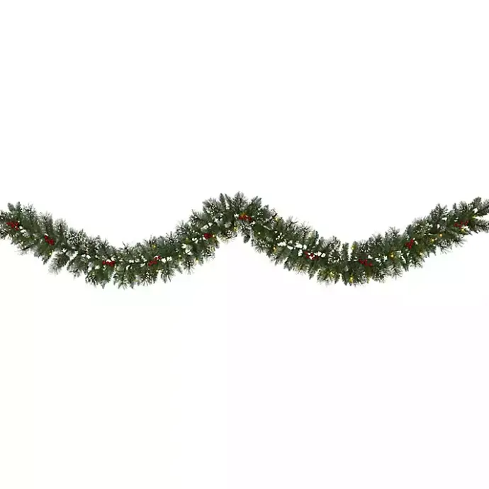 Make your holiday display a little more merry and bright with this Frosted Swiss Pine and Berry Clear LED Garland! You’ll love the way it brightens up your Christmas season.