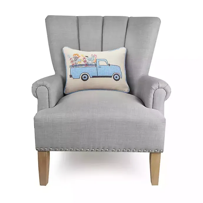 Bring a classic farmhouse accent into your home with the Gingham Truck Embroidered Lumbar Pillow. The floral detailing and bright blue hues make it perfect for the spring and summer!