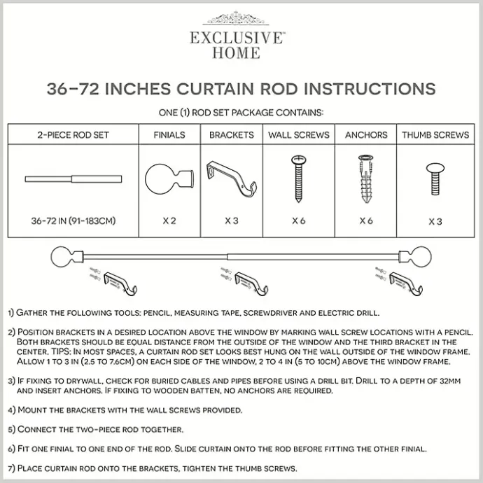 - Rod measures 36L x 1 in. in diameter; extends up to 72L in.