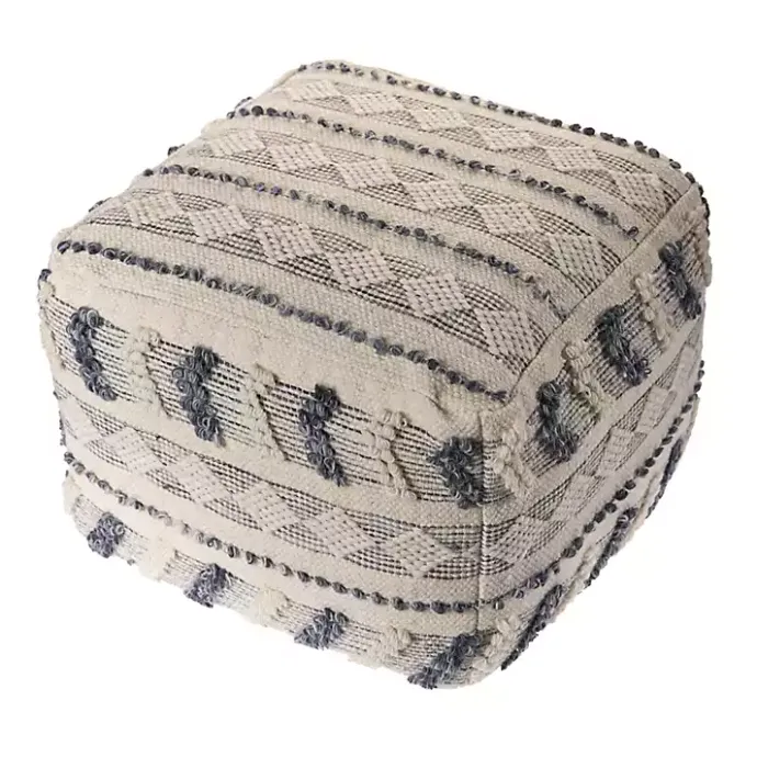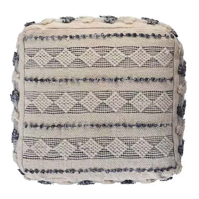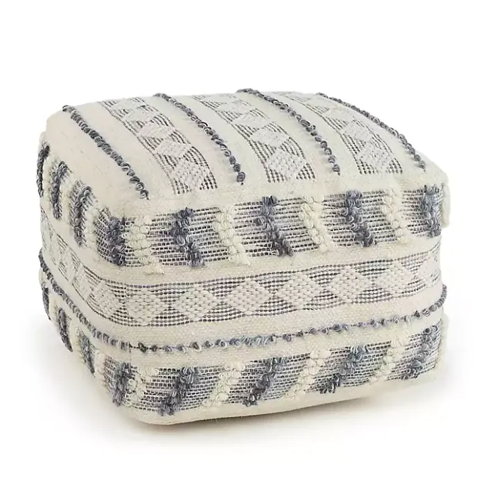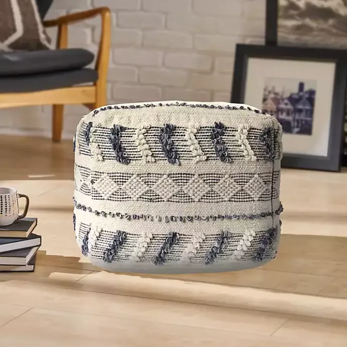 Bring some extra seating and style into your space with this Ivory and Navy Textured Stripe Pouf. Its boho style will make a great addition to your living room or bedroom!