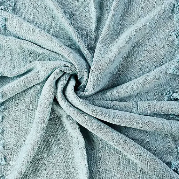 Curl up and get cozy with this delightfully soft throw blanket. The Light Blue Checkered Weave Fringe Throw has a beautiful, rich color and simple design that will complement any living space.