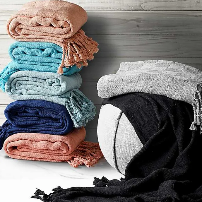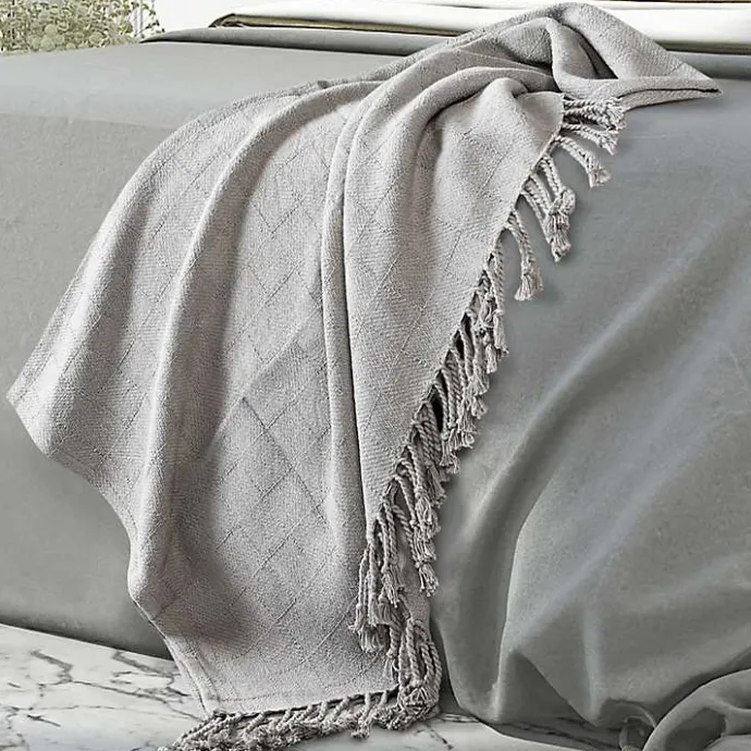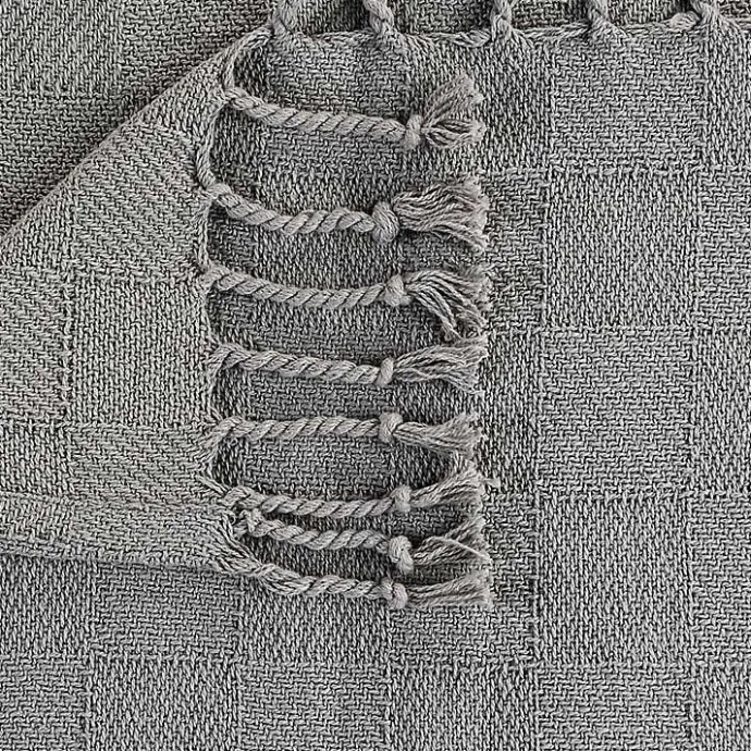 Curl up and get cozy with this delightfully soft throw blanket. The Light Gray Checkered Weave Fringe Throw has a beautiful, rich color and simple design that will complement any living space.