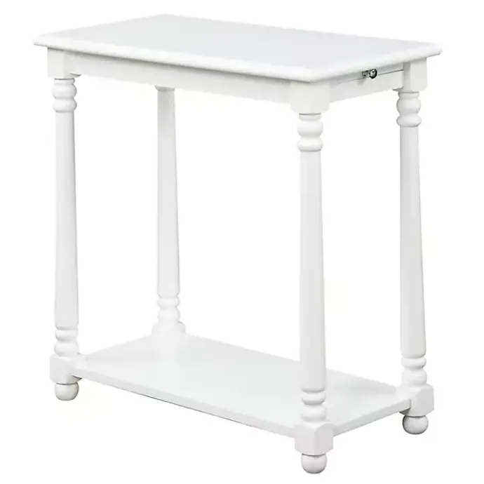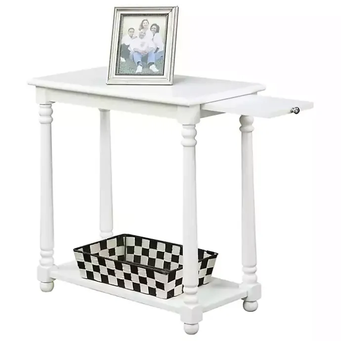 With a sturdy construction and a classically simple design, this White Regent Wood Accent Table will be the perfect addition to your space. Its pull-out shelf offers convenient, extra surface space whenever needed!