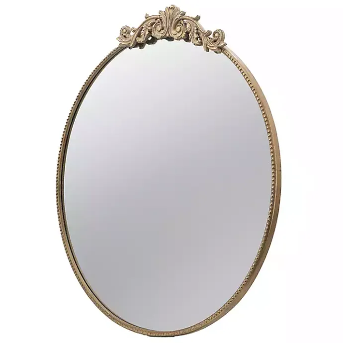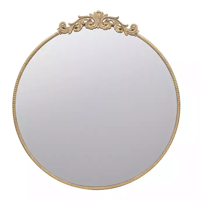 Reflect your vintage sense of style in a charming way! Our Round Antique Gold Floral Scroll Mirror is sure to add some elegance and personality to any wall.