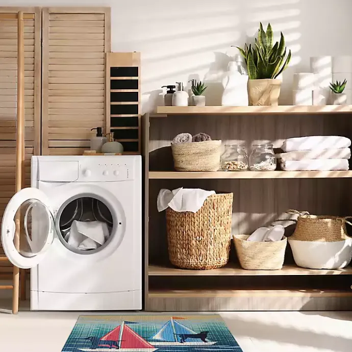 The laid-back feeling of a day on the shore is reflected in this Sailboat Dogs Indoor/Outdoor Accent Rug. Its fun design will make the perfect addition to your space this summer!