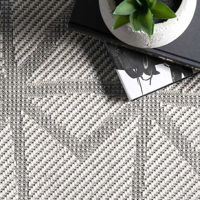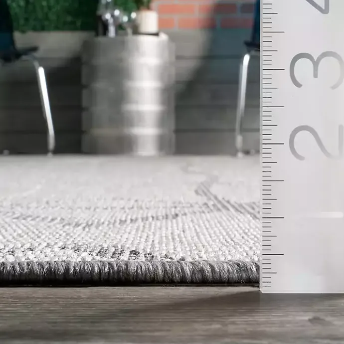 Turn your outdoor space into an oasis with this Sanford Light Gray Geometric Outdoor Rug. You’ll love how its geometric gray and white pattern looks!