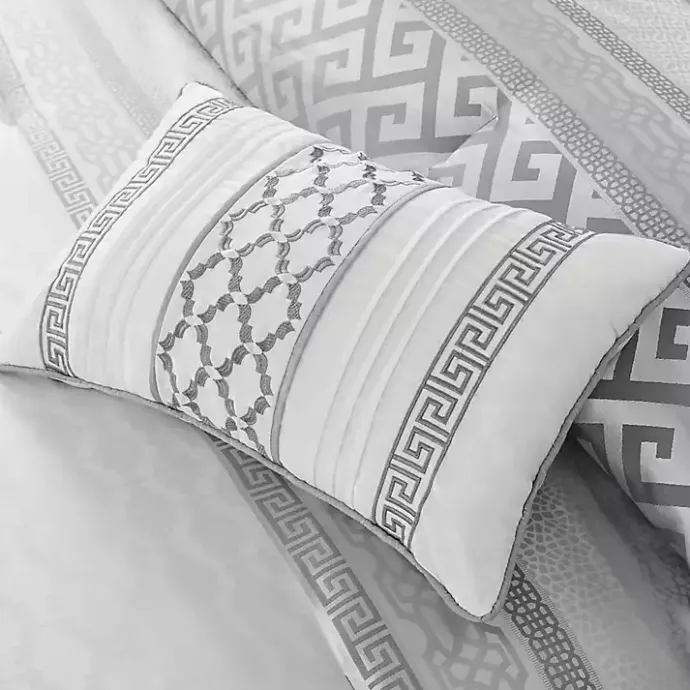 If you want to add elegance and style to your bedroom, this comforter set is perfect. The Silver Geometric Stripes 7-pc. King Comforter Set will look great in any bedroom.