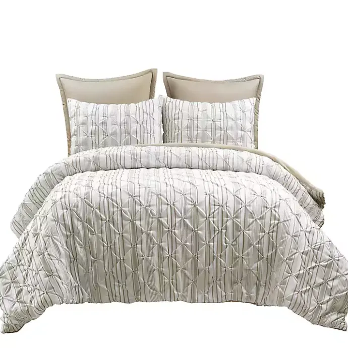 Give your bed a classic farmhouse makeover using this Tan Pintuck Stripe King 5-pc. Comforter Set! The unique texture and alternating stripes will add dimension to your bedroom.