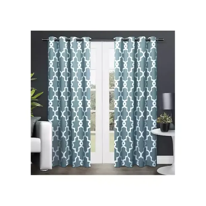 Our Teal Maxwell Blackout Curtain Panel Set features a stylish quatrefoil design that easily updates any room while its thermal blackout fabric keeps out light and holds in warmth.