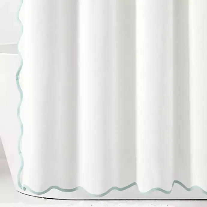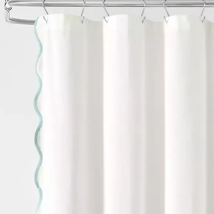 Add a chic, coastal touch to your bathroom with our White Blue Scalloped Coastal Shower Curtain! The stylish scalloped edges will remind you of the peaceful waves of the ocean!