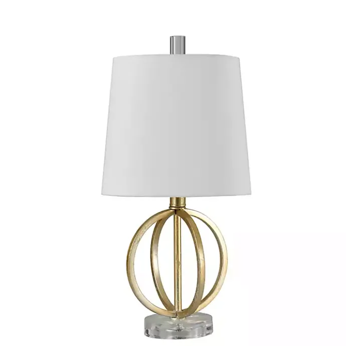 Our Antique Gold Table Lamp features a sturdy, steel base in a rich, golden hue! You’ll love its intersecting circle design – complemented with a sleek, white shade.