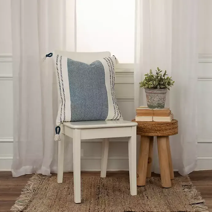 Add a homey accent to your seating area with our Blue and White Block Loop Throw Pillow! You’ll love the modern loop tassels and the versatile style.