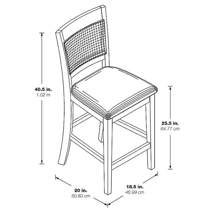 - Each stool measures 18.3L x 20W x 40.5H in.; seat height: 25.4 in.