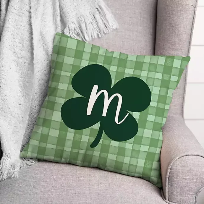 Add a personal touch to your St. Patrick’s Day décor with our Clover Personalized Monogram Throw Pillow! This green plaid pillow is perfect for a dash of festive flair to your living room.