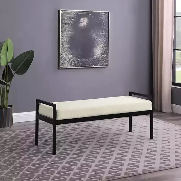 Add some soft charm to your entry way with this Cream Sherpa Upholstered Metal Bench! You’ll love how this soft, textured piece looks with your modern home decor style.