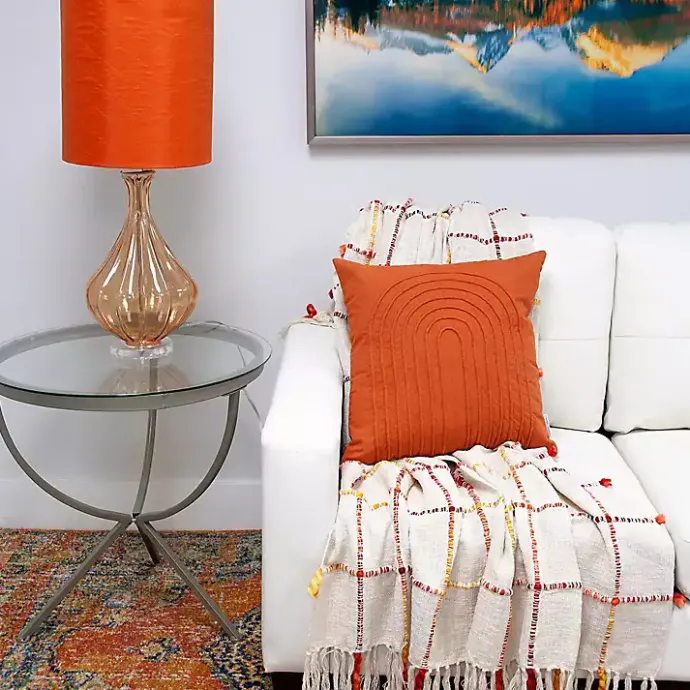 Energize your space with a beautifully bold pop of orange! The bright style of this Orange Curved Stripes Pillow is sure to put a lively touch on your sofa.