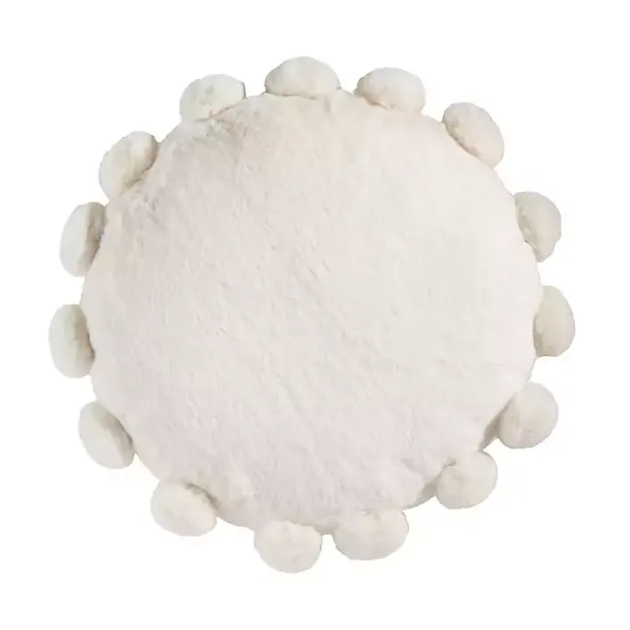 Accent your home with this White Faux Fur Round Pom Pom Throw Pillow! The soft faux fur is perfect for getting cozy on your couch. The pom poms will bring a fun look to your space that you’ll love!
