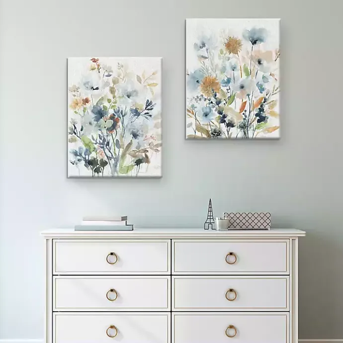Let spring bloom in your home all year round with these Holland Spring Mix Canvas Art Prints. You will love the hues of blue and orange on the flowers.