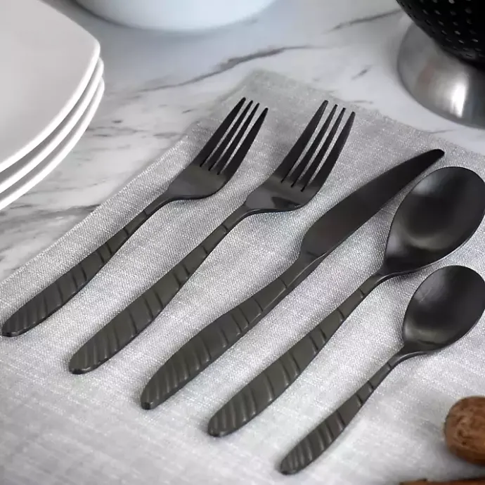 Express your modern sense of style down to the last detail! You’ll love eating meals with the sleek, industrial look of this Matte Black Steel Diagonal 20-pc. Flatware Set!