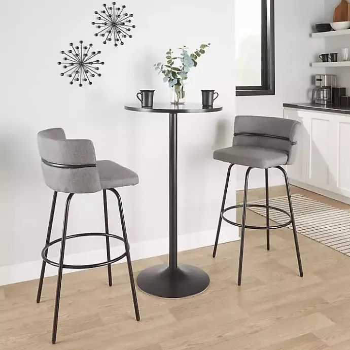 Bring a chic, modern look to your dining space with our Gray Metal Cinch Swivel Bar Stool Set! You’ll love how these bar stools add a sleek and contemporary touch to your table or bar!