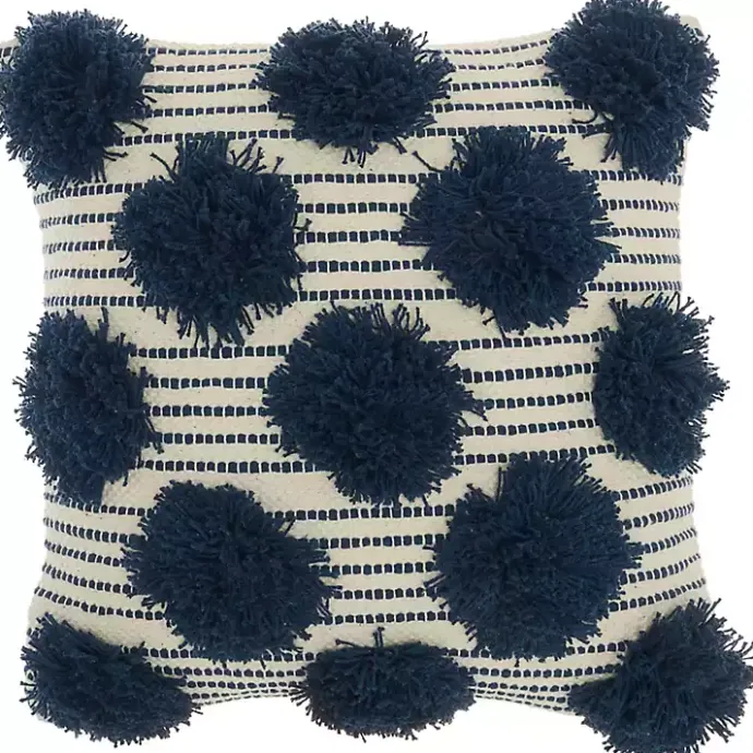 Add lively color and texture to your space with our Navy Tufted Pom Poms Throw Pillow! You’ll love how this stylish pillow accents your space with a boho chic flair!
