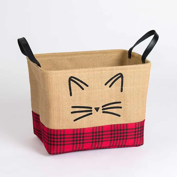 Accent your space with this Red and Black Plaid Cat Whiskers Jute Bin! This bin features a cat design, making it the perfect gift for pet parents or furry friends!