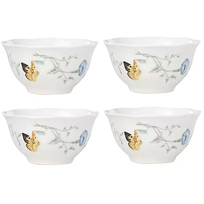 Bring garden-inspired beauty to your tablescape with the White Butterfly Meadow Rice Bowls. The scalloped rims and botanical designs will add a delicate springtime charm to your dinnerware.