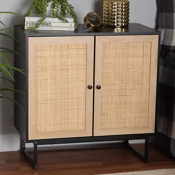 This Black Wood and Rattan 2-Door Cabinet will add a mid-century modern flair to your home. With a mix of light and dark tones and woven rattan detailing, this piece will look charming in any room of your home!