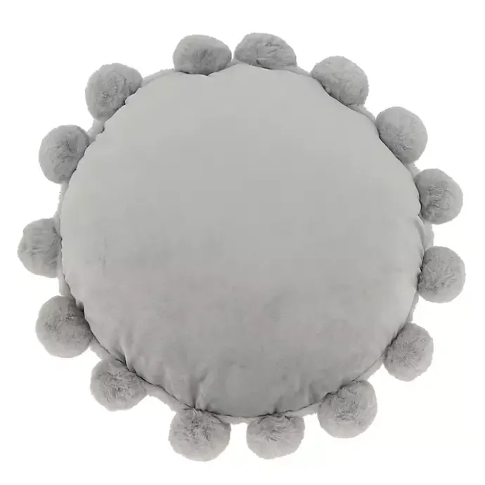 Accent your home with this Gray Faux Fur Round Pom Pom Throw Pillow! The soft faux fur is perfect for getting cozy on your couch. The pom poms will bring a fun look to your space that you’ll love!