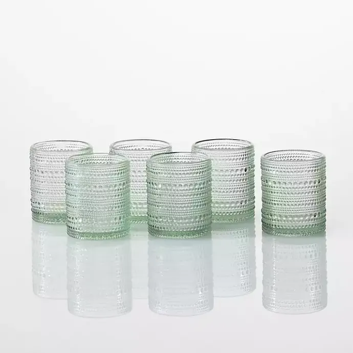 Inspired by Parisian flea market finds, these Fortessa Sage Bead Short Glasses will brighten any table with their eye-catching color. Bands of beaded detailing add timeless elegance to each glass.