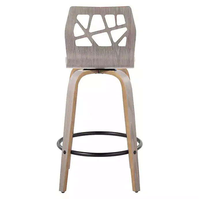 Bring contemporary character to your dining room with the set of Gray Golia Swivel Counter Stools. The curved frames, geometric cutouts, and padded leather seats create a distinct, modern look!