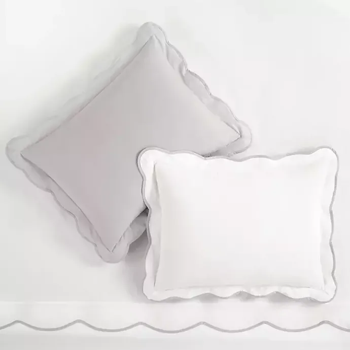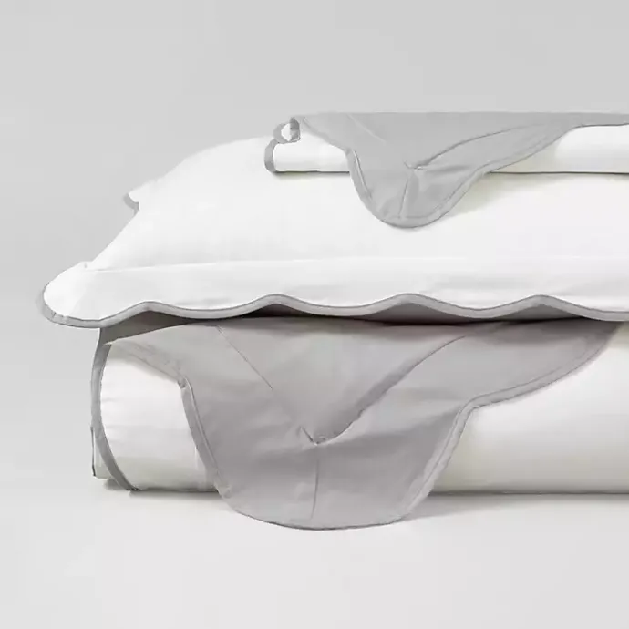 The quaint style of this Gray Scallop Edge 3-pc. Full/Queen Duvet Cover Set will give your bedroom a lovely refresh. Its light tones and scalloped detailing are perfect for coastal or cottage decor!