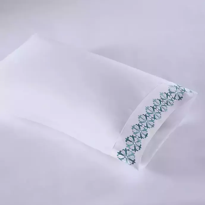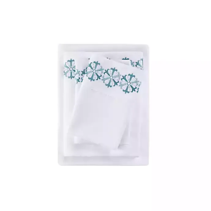 Style your bed with the simple elegance of the Medallion Hem Microfiber 4-pc. Full Sheet Set. These solid microfiber sheets feature a beautiful embroidered hem that adds a refined touch to your bedroom.