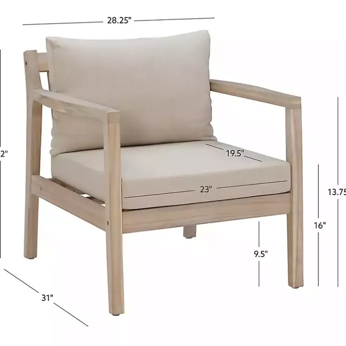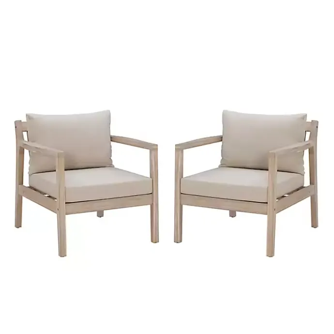 Create the ultimate backyard lounge space with this Natural Acacia Wood 2-pc. Outdoor Accent Chair Set! The comfy, neutral cushions will blend with your decor all year round.