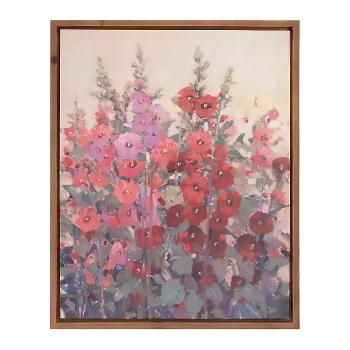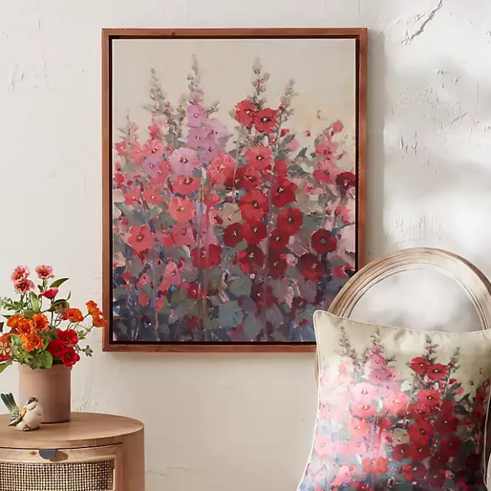 Treat your wall to the lovely florals of the Pink & Red Hollyhock Framed Canvas Art Print! It will make the perfect centerpiece above your mantle or by the kitchen table.