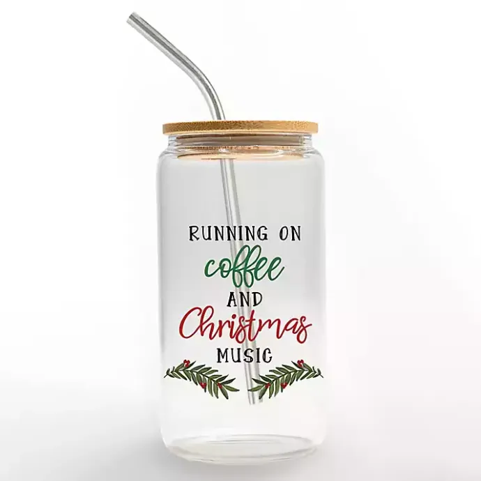Filled with your favorite iced beverage, the Running on Coffee & Christmas Music Glass Tumbler is the perfect cup to take on-the-go as you complete all your holiday shopping!