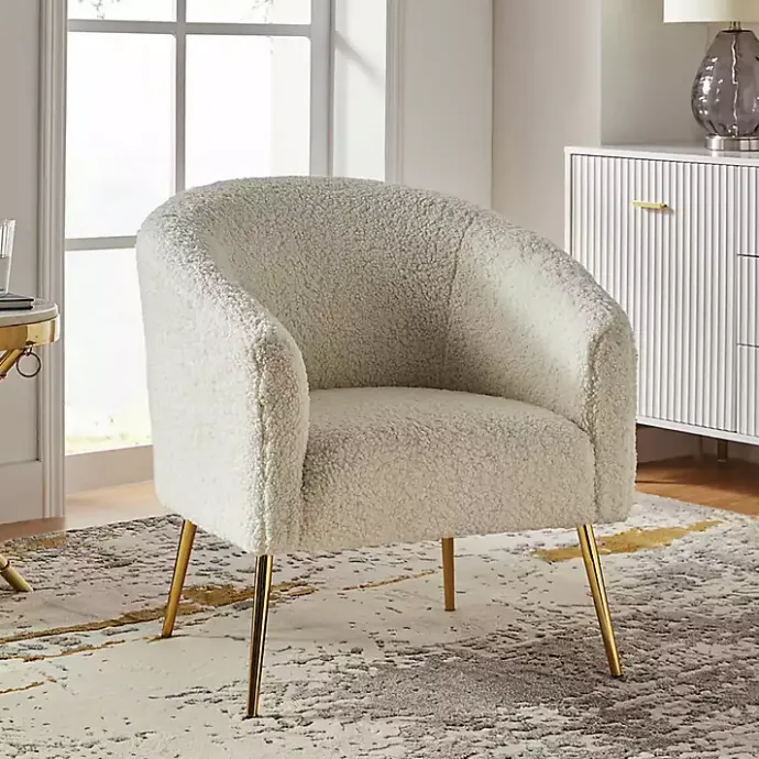 Accent your space with this Ivory Sherpa Venice Accent Chair! With its cozy fabric and chic gold legs, you’ll love experiencing ultimate comfort without sacrificing style.
