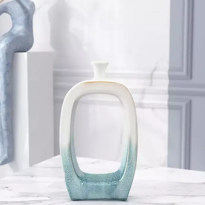 You’ll love how this White & Turquoise Ceramic Cut-Out Vase brightens your space! With its stylish cut-out design and vibrant hues, this coastal-inspired vase is sure to accent your home with a modern touch.