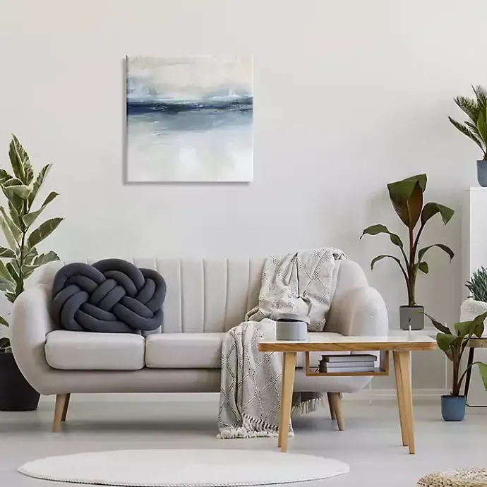 Bring the tranquility of the ocean into your home with this Abstract Nautical Horizon Canvas Print. Its deep blue hues and soft style will add a soothing feeling to any space!