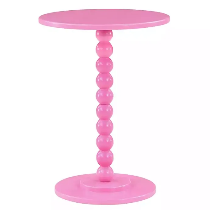 Featuring a sleek, unique style, this Pink Beaded Spindle Accent Table will bring an updated look to your home decor. Plus, its pretty pink finish will add a fun pop of color to any room in your home!
