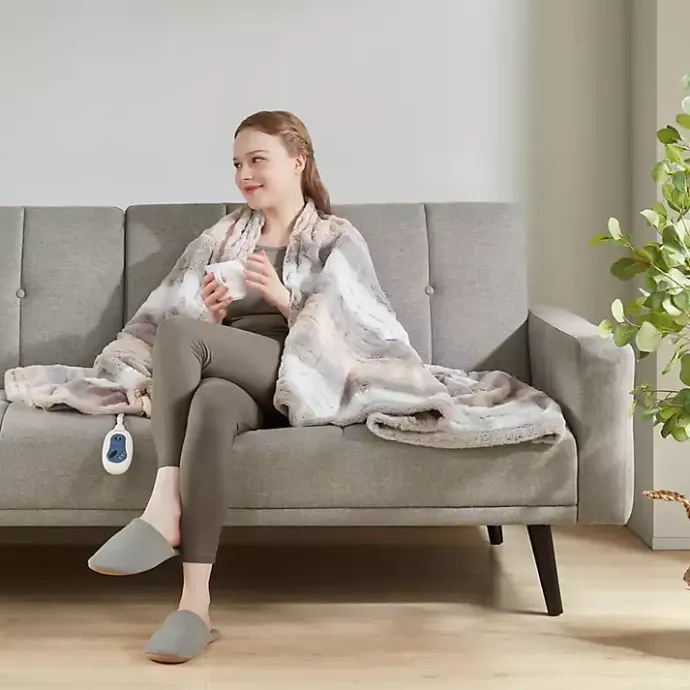 Get warm and cozy with the Beautyrest Blush Faux Fur Oversized Heated Throw! This throw utilizes state-of-the-art Secure Comfort heated technology. You’ll love the heated feature and the soft feel of the faux fur!