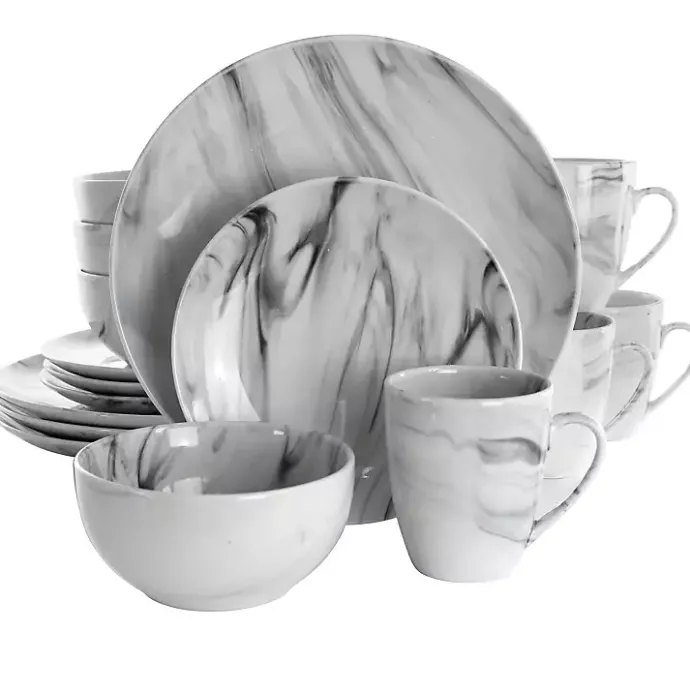 Add some style to your dining room table with our Black and White Marble 16-pc. Dinnerware Set! This stunning set will make any family dinner feel like a special event.