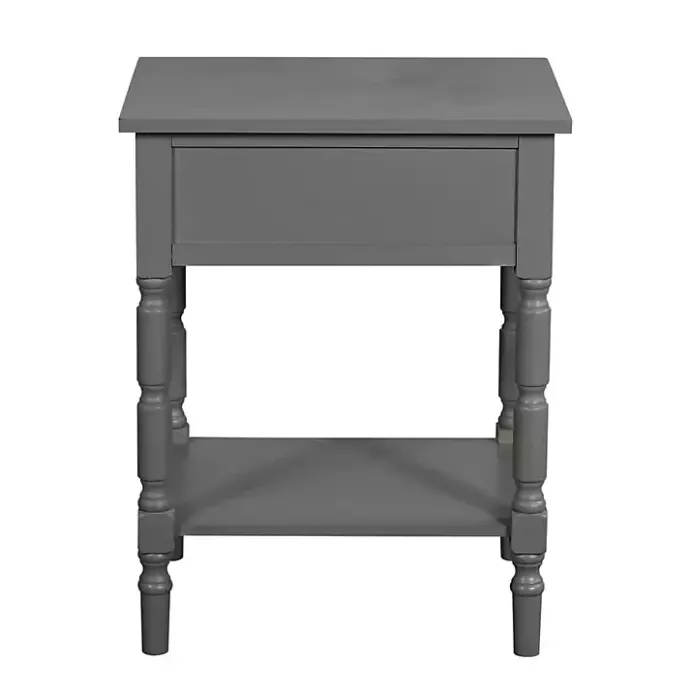 This Dark Gray Wood Barrett Accent Table is designed to be a subtle yet functional addition to your space! It’s perfect for storing essentials in the pull-out drawer and displaying books or décor on the bottom shelf.